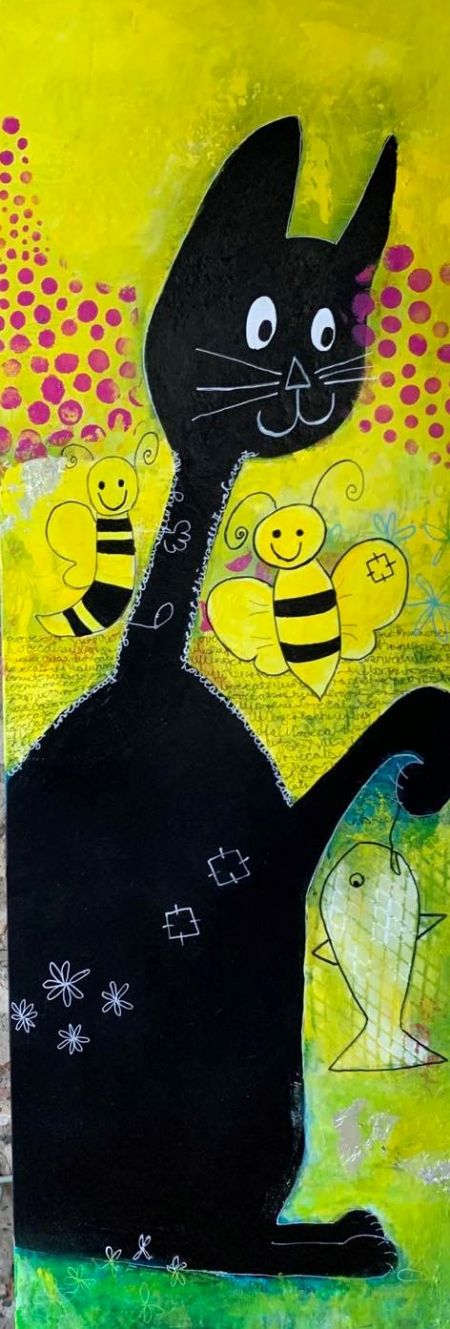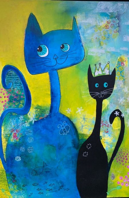 Tre kattemalerier i en serie. Alle 3 for en pris.Malerierne måler 70x100, 60x100 og 35x100.Samlet pris 7000,-