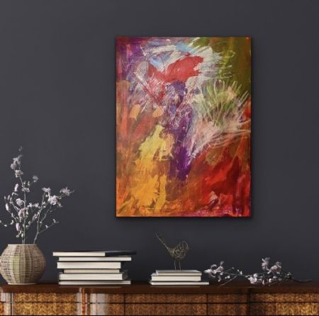 Jeg malede billedet, da corona’en var rigtig alvorlig. Vi har alle brug for kærlighed i en pandemi. Derfor er der også et hjerte i baggrunden.