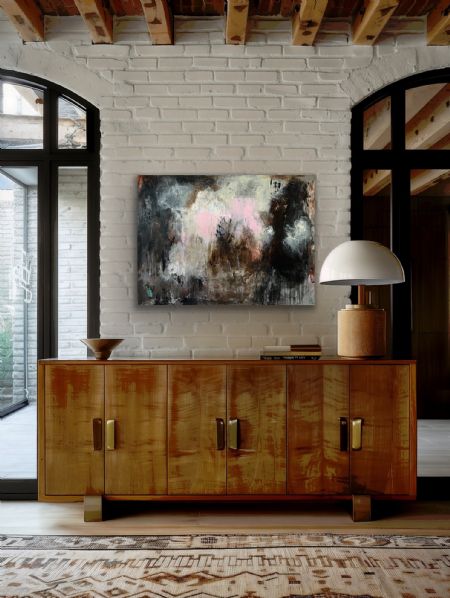 Penselstrøgene er brede og ujævne, hvilket giver overfladen en lidt rå karakter.