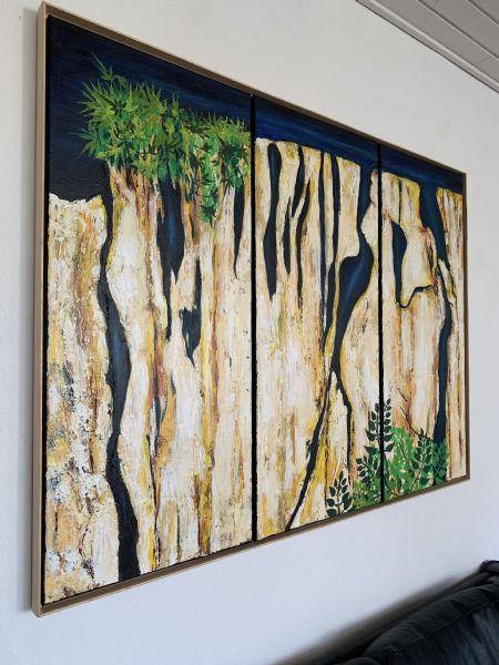 Maleriet er inspireret af en skrænt/klippe på øen Gozo. Maleriet består af 3 dele (90x40 cm)