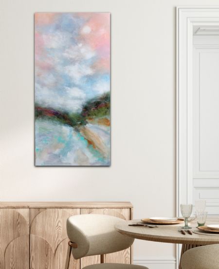 Engen måler 50x120 gåtur i drømmeland skal ses virkelig flot med snert af kobber. Prisen er uden ramme.
