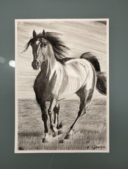 Materiale: kul, papir 200 g/m2, fiksativ spray. Signeret: Nederste højre hjørne af S. Jensen