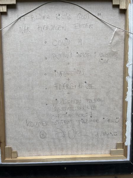 Maleriet er lavet under corona og på bagsiden har jeg anført en masse ønsker for fremtiden - når corona er long gone.