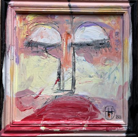 Akryl maleri Lyserød HOBLER (vase) af Helle Olesen malet i