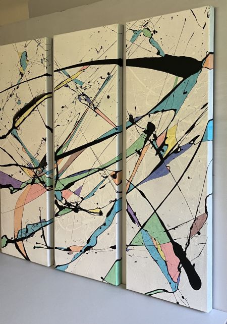 Abstrakt maleri på 4 cm tyk lærred uden ramme.