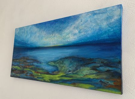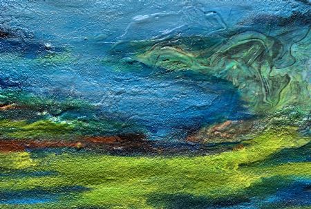 Akrylmaleri på lærred. Struktur på lærredet inden maling og lak.
