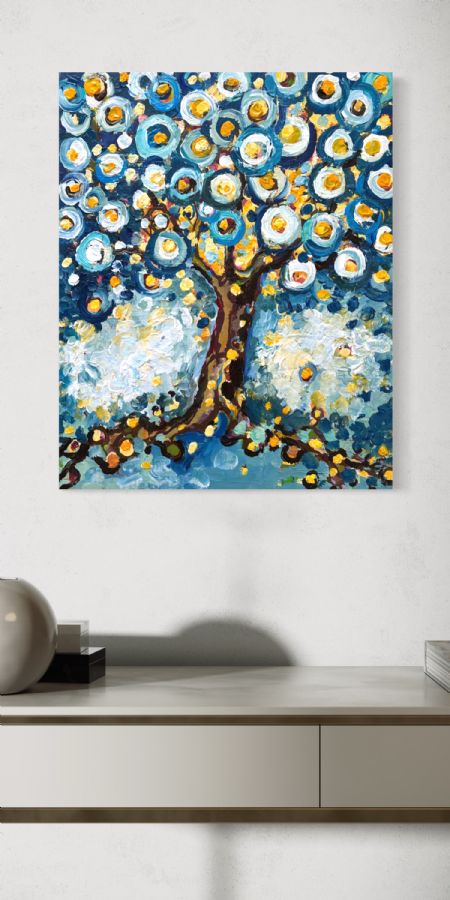 Smukkeste lys vintertræ i gyldne og blå farver