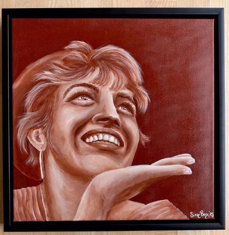 Akryl på lærred, 40 x 40 cm, i sortmalet træramme.