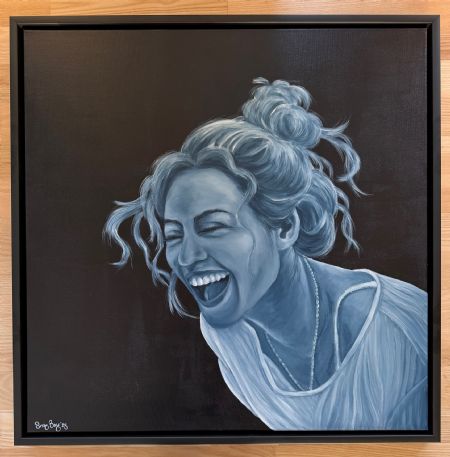 Akryl på lærred, 70 x 70 cm, i sortmalet træramme.