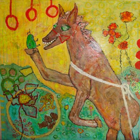 Blandede medier maleri Spændt op til lir´. af Helle Jensen malet i