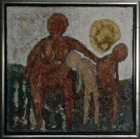 Blandede medier maleri I hjertet gemt, aldrig glemt af Helle Jensen malet i