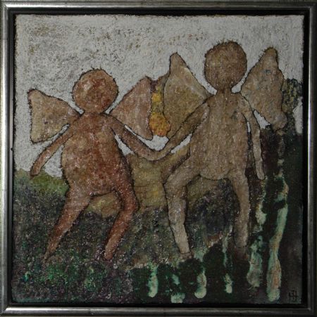 Blandede medier maleri Hej med dig + Dans med mig af Helle Jensen malet i