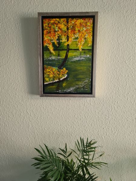Akryl på lærred monteret I "sølv" svæveramme.
