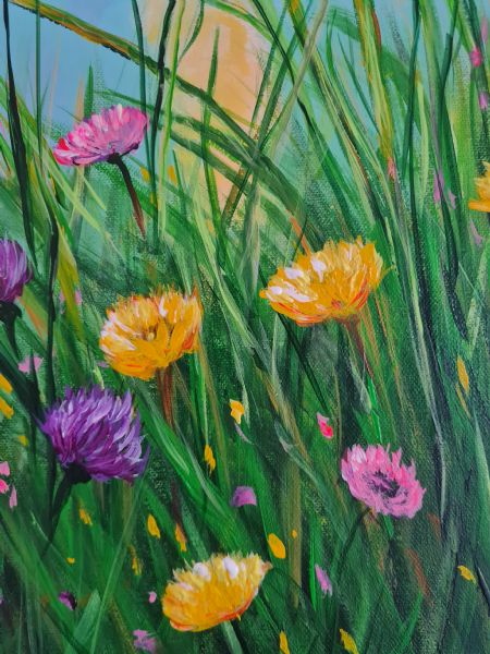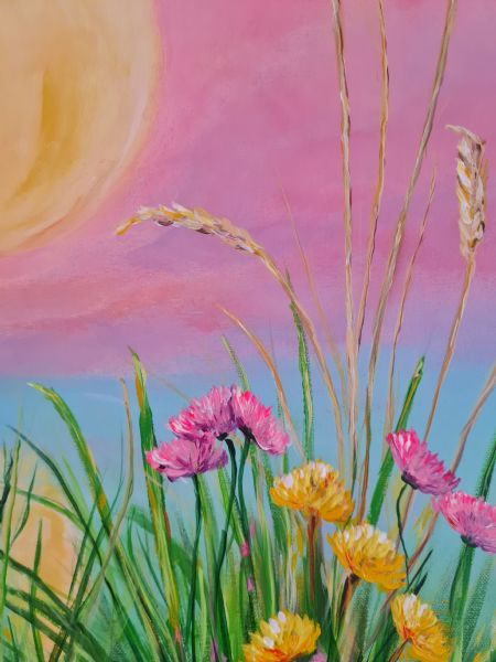Sommeren på hæld så jeg fik lyst til at fange lidt af solens varme. "Sensommer", Værket er monteret I "sølv" svæveramme. Mål inklusiv ramme 84 x 64
