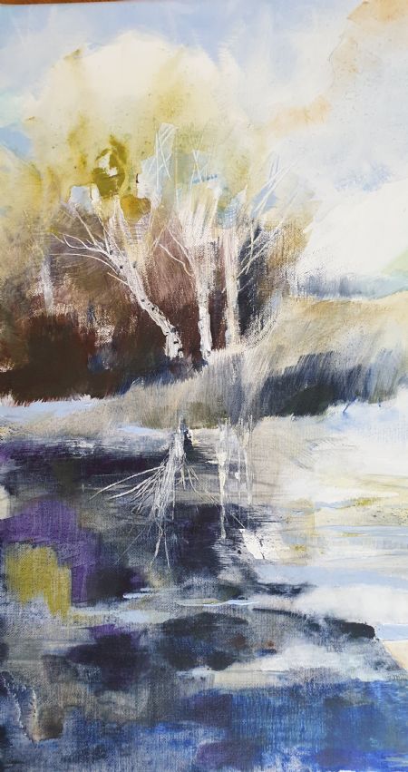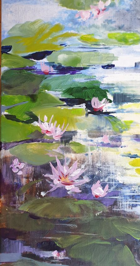 Maleriet har malede sider - kan hænges uden ramme. Med ophæng. Signeret.