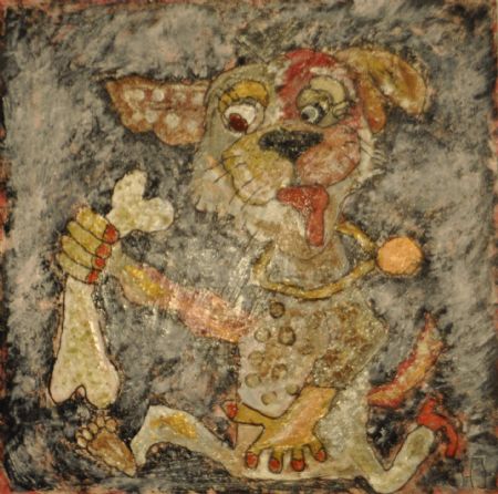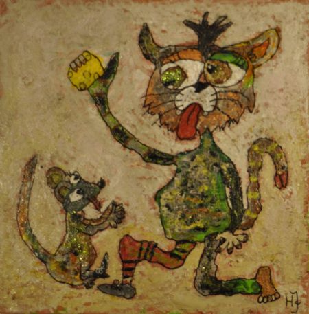 Blandede medier maleri Pruttefis. www.Galleri-HJ.dk af Helle Jensen malet i