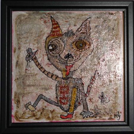 Blandede medier maleri Pruttefis. www.Galleri-HJ.dk af Helle Jensen malet i