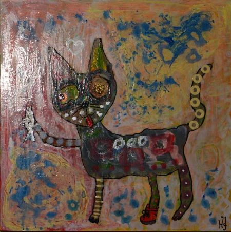 Blandede medier maleri Helt grydeklar. www.Galleri-HJ.dk af Helle Jensen malet i