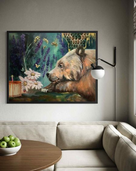 Bjørnen Benny lagde sig på hans yndlings sten og drømt om Flydene honning og en dejlig kage -En honningkage med sukkerkugler. Pludselig hørte han en summen og åbnede øjnene for at se bierne svæve omkring ham. Benny døsede stille hen igen mens han forestillede sig den søde kage -fyldt med honning -meeeeeget honning.