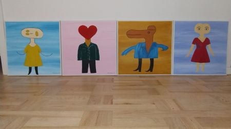 Dette maleri er en del af en unik serie af figurer, der hver har deres egen personlighed og historie.