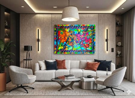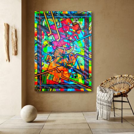 Dette moderne abstrakte maleri er en visuel eksplosion af farver og former, ideelt for en person, der værdsætter dristig og usædvanlig kunst.