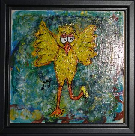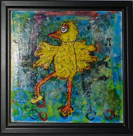Blandede medier maleri Struds helt parat af Helle Jensen malet i