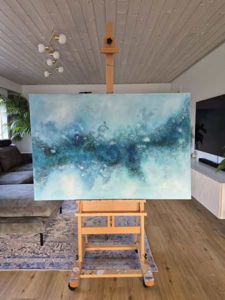Smukt abstrakt maleri. Strukturen er lavet med sand fra danske strande, hvilket giver en rå og spændende overflade, der ændrer sig med lys og vinkel.