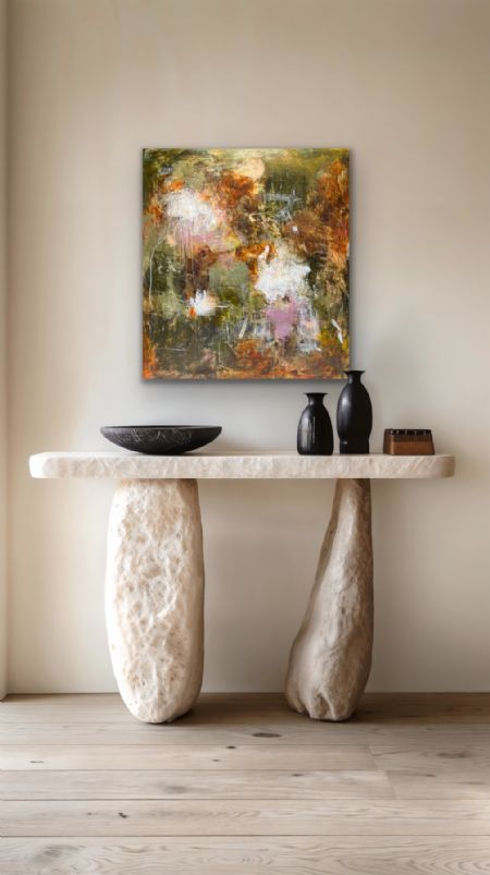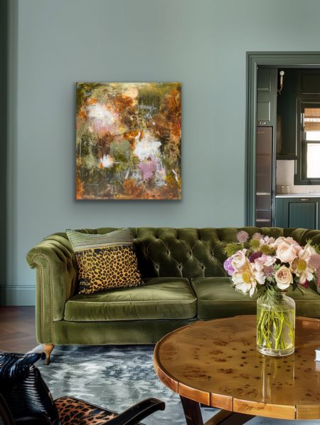 “Dette smukke maleri, hvor de grønne og lilla nuancer dominerer, skiller sig ud ved at jeg har benyttet en helt anden farvepalet end den, jeg normalt bruger.