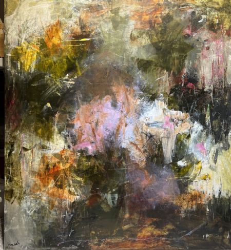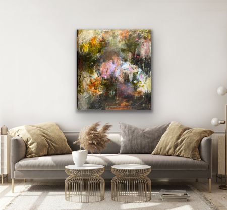 “Dette smukke maleri, hvor de grønne og lilla nuancer dominerer, skiller sig ud ved at jeg har benyttet mig af en helt anden farvepalet end den, jeg normalt bruger.