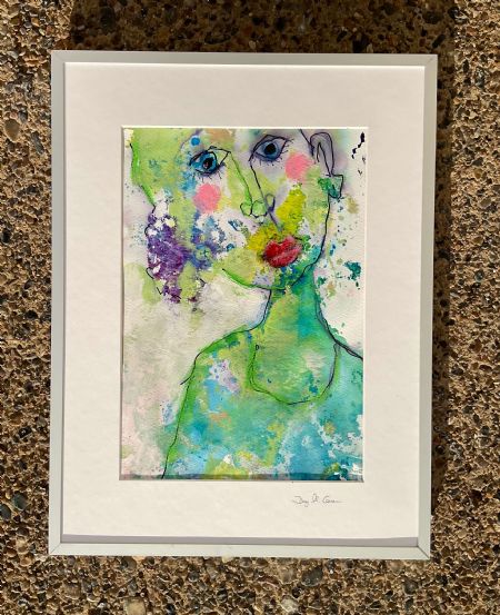Lilli er et produkt af sådan et under. Da lærredet på mit sidste maleri var rigtig godt fedtet til, og det hele sejlede, tog jeg et stykke kraftigt akvarelpapir og lod det suge op af den overskydende maling. Og dette skete ikke én gang, men igen og igen. Nok nærmere 10 eller 20 gange. Og pludselig fik jeg øje på Lilli, der bly og ydmyg kiggede mig lige ind i øjnene.