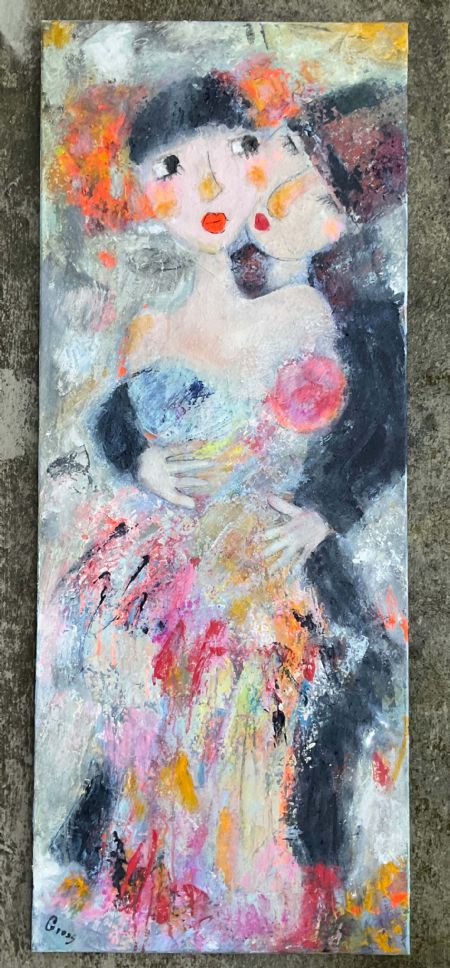 Jeg har malet på 'Kobberbryllup' længe. Lag på lag på lag. Derved opstår det særlige, stoflige udtryk, som er så lækkert.