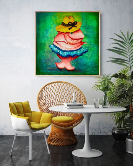 En dansende hval i strutskørt og sommerhat