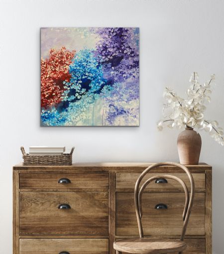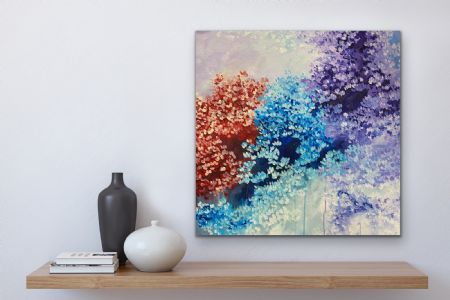 Mine malerier med blomster er mere end blot enkle repræsentationer. De inviterer beskueren til at udforske de mange elementer, der findes 'inde bag blomsterne'. Farverne er levende og rigt varierede, og med deres mangfoldighed af nuancer i baggrunden, som ligger dybt inde, passer de perfekt ind i en bred vifte af hjem.