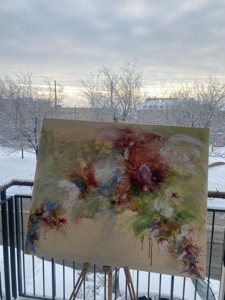 Abstrakt maleri malet med akryl og olie. Symboliserer efterklangen og udspillet af tankernes dybde.