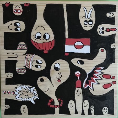 Inuit HOBLER tegnet på træplade.
