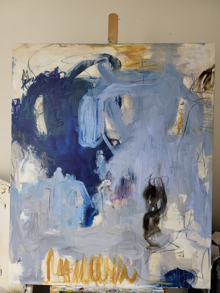 Akrylmaleri 120x100 cm lakeret med halvblank lak. Maleriet sælges uden ramme og kan ses I galleriet på løkkensvej 668, 9480 løkken.