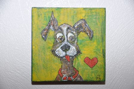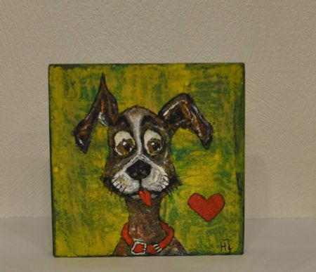 Galleri-HJ maleri på en træklods str. 14x14, som både kan hænge og stå.