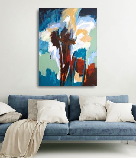 Akrylmaling i mange lag på lærred.