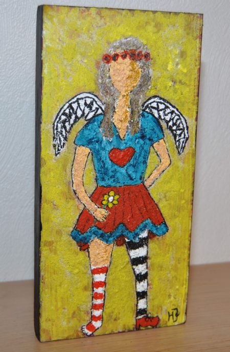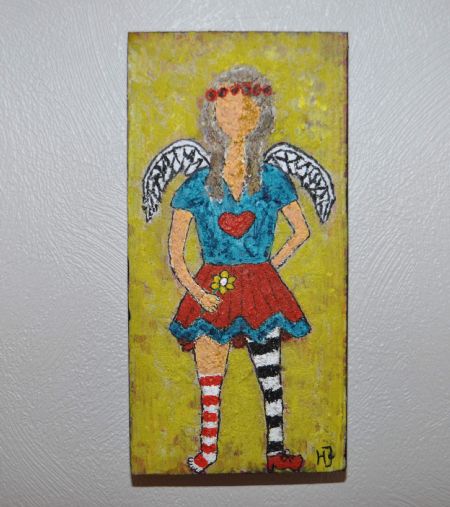 Galleri-HJ maleri på en træklods str. 28x14, som både kan hænge og stå.