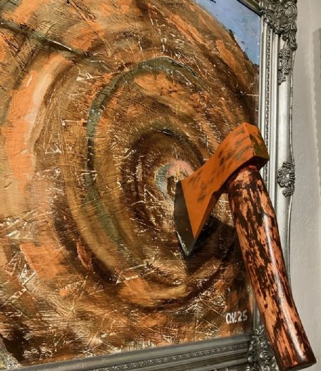 Olie maleri Kloden under pres! Skovhugst No.4 (7) af Ole Vinther malet i 2025