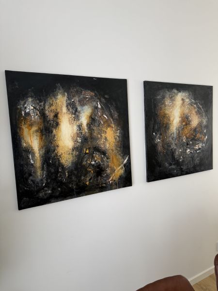 3 malerier sælges helst samlet. Det store måler 150x100De små måler 80x80