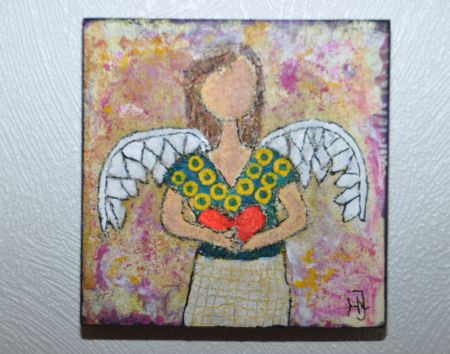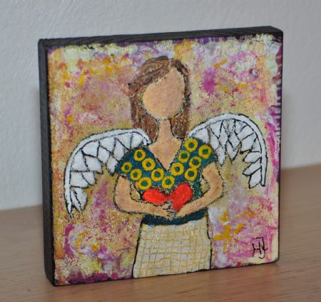 Galleri-HJ maleri på en træklods str. 14x14, som både kan hænge og stå.