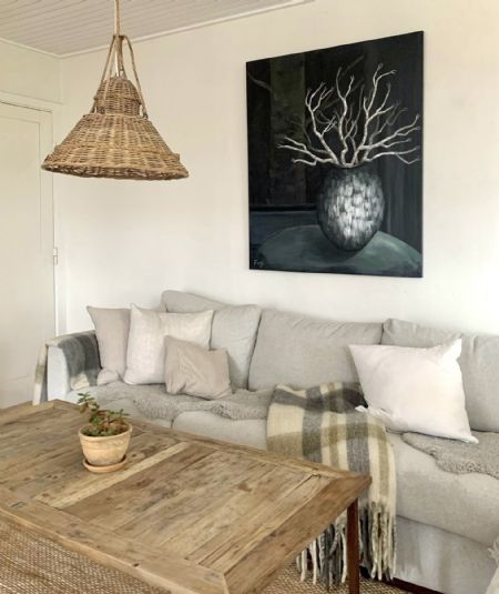 Her leger jeg med lys der træder frem ur mørket og skaber en form. Et rum der er mørkt og stille og hvor nogen har inviteret naturen hjem. Enkle grene der minder om træets skønhed, smukt placeret midt på bordet.