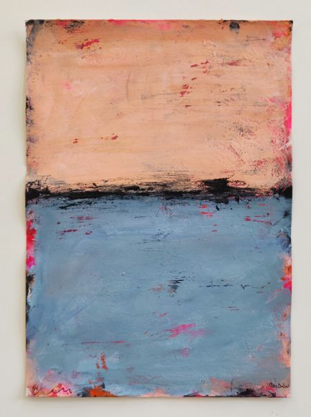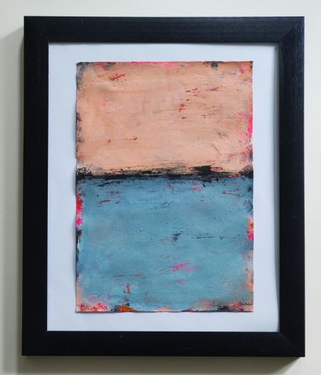 Akrylmaling og tusch på kraftigt papir til at sætte i en ramme.