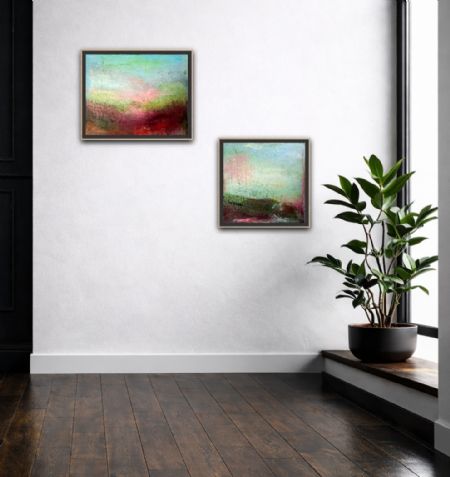 Flotte malerier i sorte rammer (kan skiftes til anden farve ex. Hvid - guld.Abstrakt natur fra Heden. Måler 40X40 og 50×40. Pr stk 1.100 - kan sælges hver for sig.