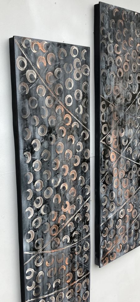 Aflange Malerier på træ uden rammer.