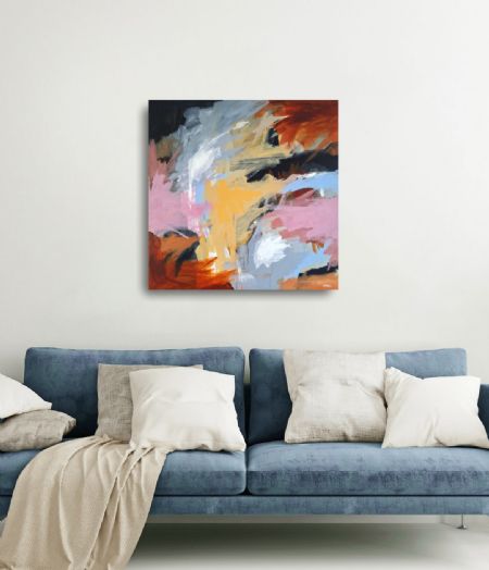 Akrylmaling i mange lag på lærred.