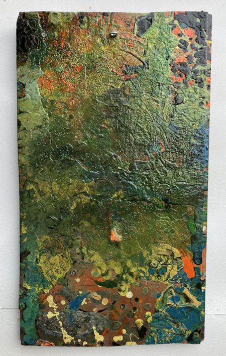 Abstrakt akryl maleri på træ uden ramme.
