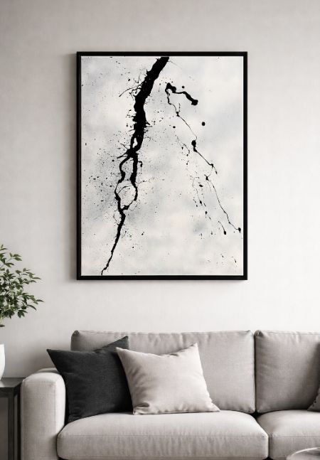 Abstrakt / Spray maleri på lærred lagt på sort - Ramme.