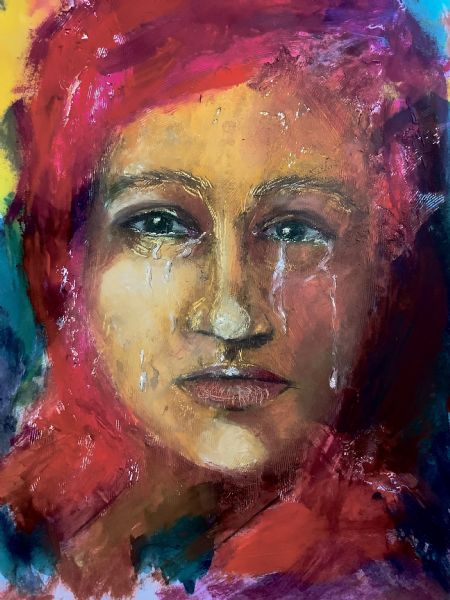 Oil textured woman on treated paper.